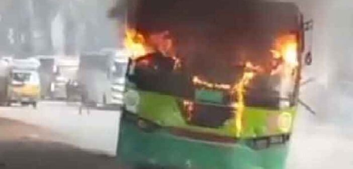 উত্তরায় পার্কিং করা অবস্থায় ভূঁইয়া পরিবহনের একটি বাসে আগুন