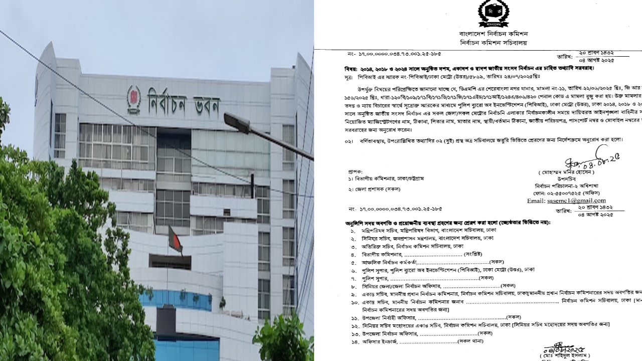 ঢাকা অফিস: পুলিশ ব্যুরো অব ইনভেস্টিগেশন (পিবিআই) ২০১৪, ২০১৮ এবং ২০২৪ সালের জাতীয় সংসদ নির্বাচনের সময় দায়িত্বে থাকা নির্বাহী ম্যাজিস্ট্রেটদের বিস্তারিত তথ্য চেয়েছে। শেরেবাংলা নগর থানায় দায়ের করা একটি মামলার সুষ্ঠু তদন্তের স্বার্থে এই তথ্য চাওয়া হয়েছে।সোমবার (৪ আগস্ট) নির্বাচন কমিশনের নির্বাচন পরিচালনা শাখার উপসচিব মোহাম্মদ মনির হোসেন স্বাক্ষরিত এক চিঠিতে দেশের সব জেলা প্রশাসক, ঢাকা ও চট্টগ্রাম বিভাগের বিভাগীয় কমিশনারদের কাছে এই তথ্য সরবরাহ করতে বলা হয়েছে।চিঠিতে সংশ্লিষ্ট নির্বাহী ম্যাজিস্ট্রেটদের নাম, পিতা-মাতার নাম, স্থায়ী ও বর্তমান ঠিকানা, জাতীয় পরিচয়পত্র নম্বর, পাসপোর্ট নম্বর এবং মোবাইল নম্বর জরুরি ভিত্তিতে সরবরাহ করতে বলা হয়েছে।পিবিআই ঢাকা মেট্রো (উত্তর) গত ২৪ জুলাই একটি চিঠির মাধ্যমে নির্বাচন কমিশন সচিবালয়কে বিষয়টি জানায়। নির্বাচন কমিশন সূত্রে জানা গেছে, মামলার তদন্তে সহায়তার জন্যই এই পদক্ষেপ নেওয়া হয়েছে। নির্বাচন কমিশন সচিবালয়কে দ্রুততম সময়ের মধ্যে তথ্যের দুটি কপি সরবরাহ করতে অনুরোধ জানানো হয়েছে।