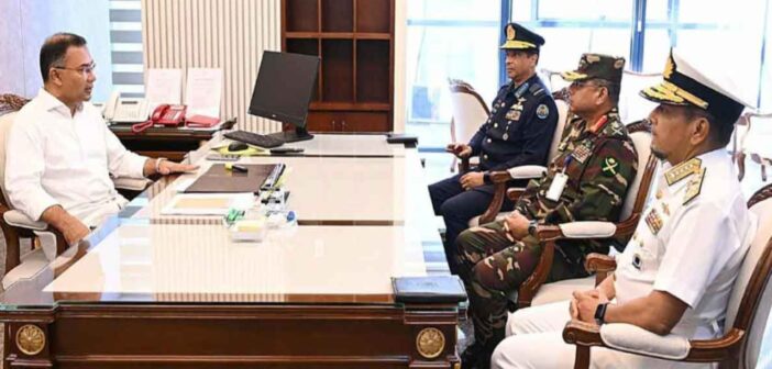প্রধানমন্ত্রী তারেক রহমানের সঙ্গে সৌজন্য সাক্ষাৎ করলেন তিন বাহিনীর প্রধান