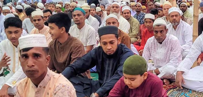 বগুড়ায় বাবা-সন্তানকে নিয়ে ঈদগাহ ঈদগাহ ময়দানে নামাজ আদায় করেন মুশফিক