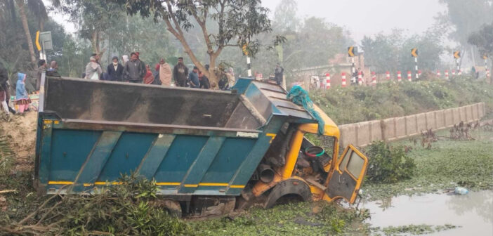 ঢাকা অফিস: নওগাঁর মহাদেবপুরে সবজিবাহী ভ্যানে বালুভর্তি ট্রাকের ধাক্কায় ৫ জন নিহত হয়েছেন। আজ শনিবার (৩১ জানুয়ারি) ভোররাত আনুমানিক সাড়ে ৪টার দিকে উপজেলার এনায়েতপুর ইউনিয়নের পাটকাঠি শিবপুর মোড়ে এই দুর্ঘটনা ঘটে। নিহতরা হলেন, উপজেলার এনায়েতপুর ইউনিয়নের নুরপুর গ্রামের মাংরা উরাওয়ের ছেলে সঞ্চু উরাও (৪৮), জুটুয়া পাহানের ছেলে বিপুল পাহান (২২), খোকা পাহানের ছেলে বীরেন (৫০), মৃত নরেন পাহানের ছেলে উজ্জ্বল পাহান (২৪) এবং অনিল পাহানের ছেলে বিপ্লব (২২)। আহত সামন্ত একই গ্রামের রমেসের ছেলে। পুলিশ ও স্থানীয় সূত্রে জানা যায়, শনিবার ভোরে দুটি ব্যাটারিচালিত চার্জার ভ্যানে করে কাঁচা হলুদ ও বেগুন নিয়ে মহাদেবপুর হাটে যাচ্ছিলেন স্থানীয় কয়েকজন কৃষক ও ব্যবসায়ী। পথে পাটকাঠি শিবপুর এলাকায় পৌঁছালে নজিপুরগামী একটি বালুভর্তি ড্রাম ট্রাক (রংপুর মেট্রো ট-১১০০০৪) ওই ভ্যান দুটিকে সজোরে ধাক্কা দেয়। এতে ঘটনাস্থলেই দুইজনের মৃত্যু হয়। স্থানীয়রা ভ্যানে থাকা অন্য চারজনকে গুরুতর আহত অবস্থায় উদ্ধার করে মহাদেবপুর উপজেলা স্বাস্থ্য কমপ্লেক্সে নিয়ে যাওয়ার পথে আরও তিনজনের মৃত্যু হয়। সব মিলিয়ে এই ঘটনায় নিহতের সংখ্যা দাঁড়িয়েছে পাঁচে। এছাড়া সামন্ত (৩০) নামের এক ভ্যানচালক আহত হয়েছেন। এ বিষয়ে মহাদেবপুর থানা পুলিশ জানায়, দুর্ঘটনার পর থেকেই ঘাতক ট্রাকের চালক পলাতক রয়েছেন। ট্রাকটি জব্দ করা হয়েছে। এ বিষয়ে পরবর্তী আইনানুগ ব্যবস্থা প্রক্রিয়াধীন।